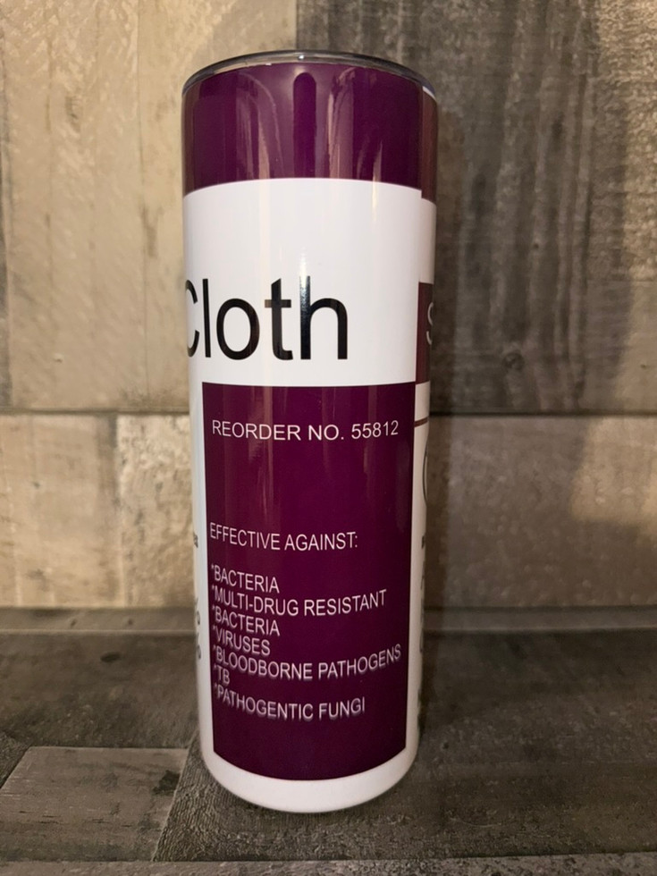 This is not an actual container of Sani-Cloths or disinfecting wipes. It is a novelty tumbler design intended for humor and style only. Not for sanitizing or cleaning purposes.