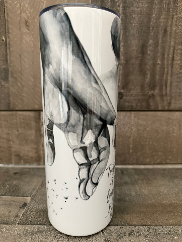 Featuring an artistic couple holding hands and embracing, surrounded by soft dandelion details, the phrase “Together is our favorite place to be” completes the heartfelt message.