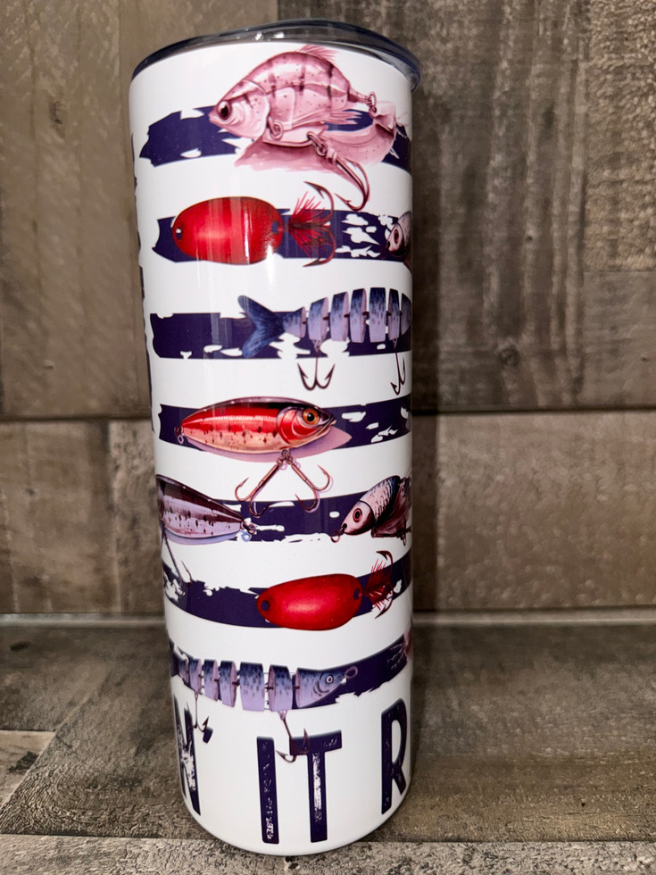 Featuring a bold star-and-hook emblem and rows of colorful lures, this design is perfect for anglers who know that every cast is a chance at the big one.