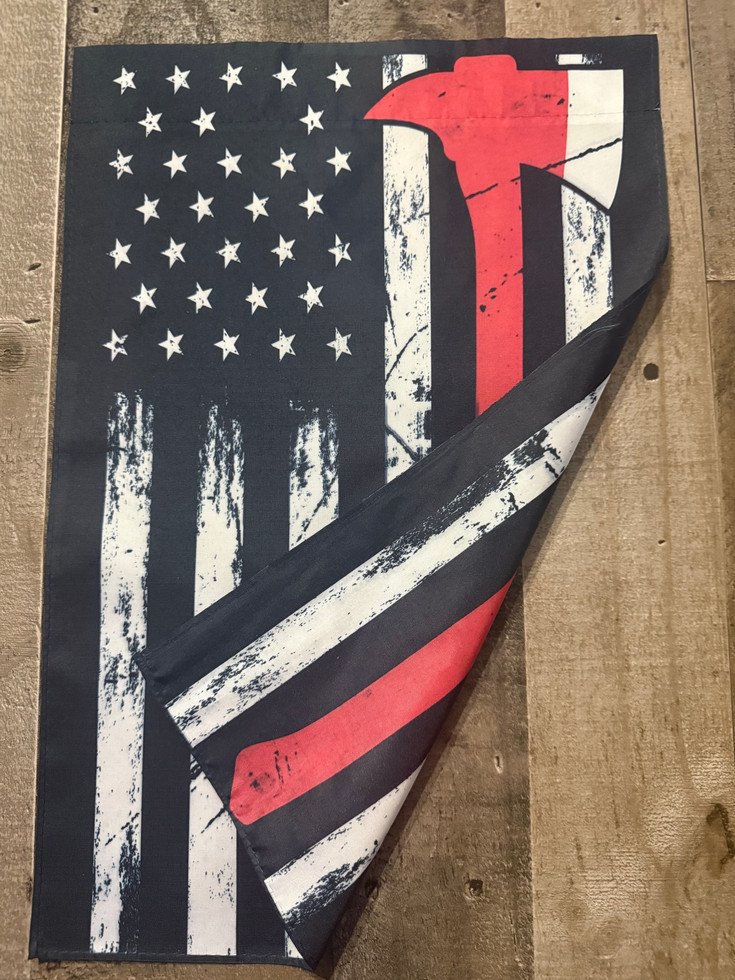 Honor the bravery and sacrifice of firefighters with this striking design. A distressed American flag is paired with a bold red fireman’s axe, symbolizing strength, courage, and unwavering service. Perfect for display year-round or during special remembrance events, this piece makes a powerful tribute to the heroes who protect our communities from the flames.